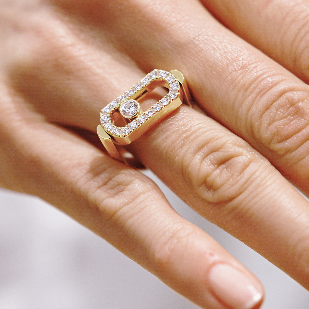 Modern, raffiniert und auf eine sehr edle Weise sexy und markant, betören die schimmernden Designs mit Wow-Effekt, wie zum Beispiel Messikas ikonische Schmuckkollektion „Move Uno“ mit ihren klaren geometrischen Formen und dem kess auf einer Schiene schwebenden Diamanten.