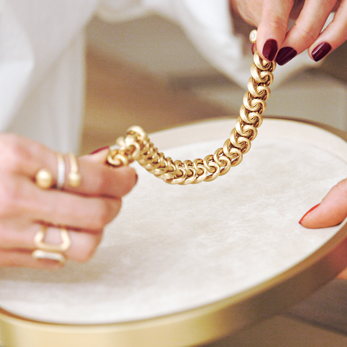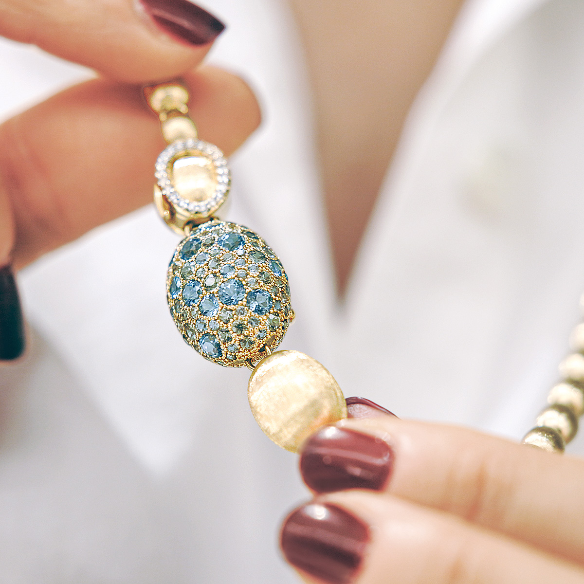 Dabei vereint die faszinierende Schmuckwelt von Nanis auf virtuose Weise beides: überliefertes Handwerk wie zum Beispiel die traditionelle Goldgravur mit dem legendären Stichel, aber auch innovative Technik für raffinierte Effekte und einen perfekten Tragekomfort.